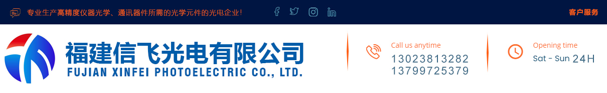 福建信飞光电有限公司,是一家专业生产高精度仪器光学、通讯器件所需的光学元件的光电企业,公司严格按照ISO9001体系为管理平台,实行制度化、规范化和人性化管理。 我们的主要产品包括高精度棱镜、小透镜、反射镜片、分光片、偏振光学元件及光通讯元件C-LENS,用在准直器,数据中心模块(包括融石英支架玻璃套管及各种契角片),广泛应用在5G网络和激光领域上面。同时,我们还为客户蒸镀各类增透膜、高反膜及各种反射膜等。